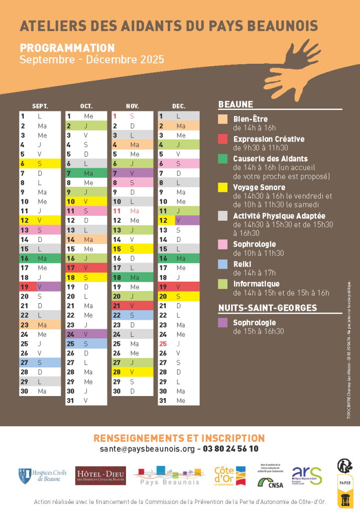 Deuxième semestre 2025 – Ateliers des aidants du Pays Beaunois