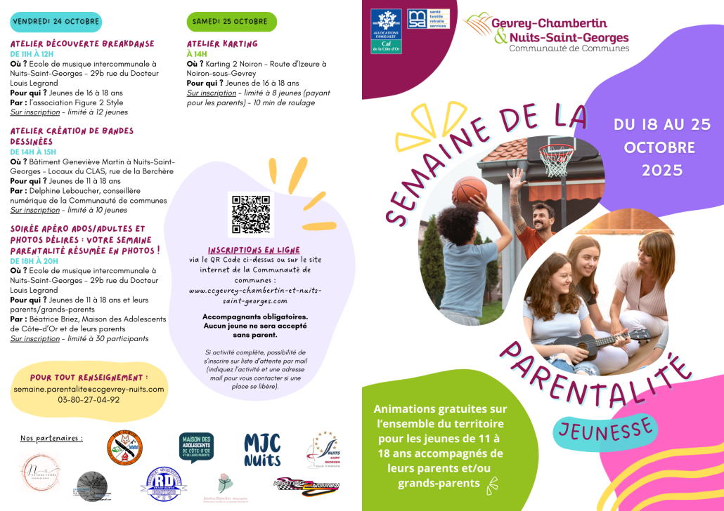 La Communauté de communes, avec le soutien financier de la CAF de Côte-d’Or et de la MSA, organise pour la seconde année la Semaine de la Parentalité, du 18 au 25 octobre 2025.
