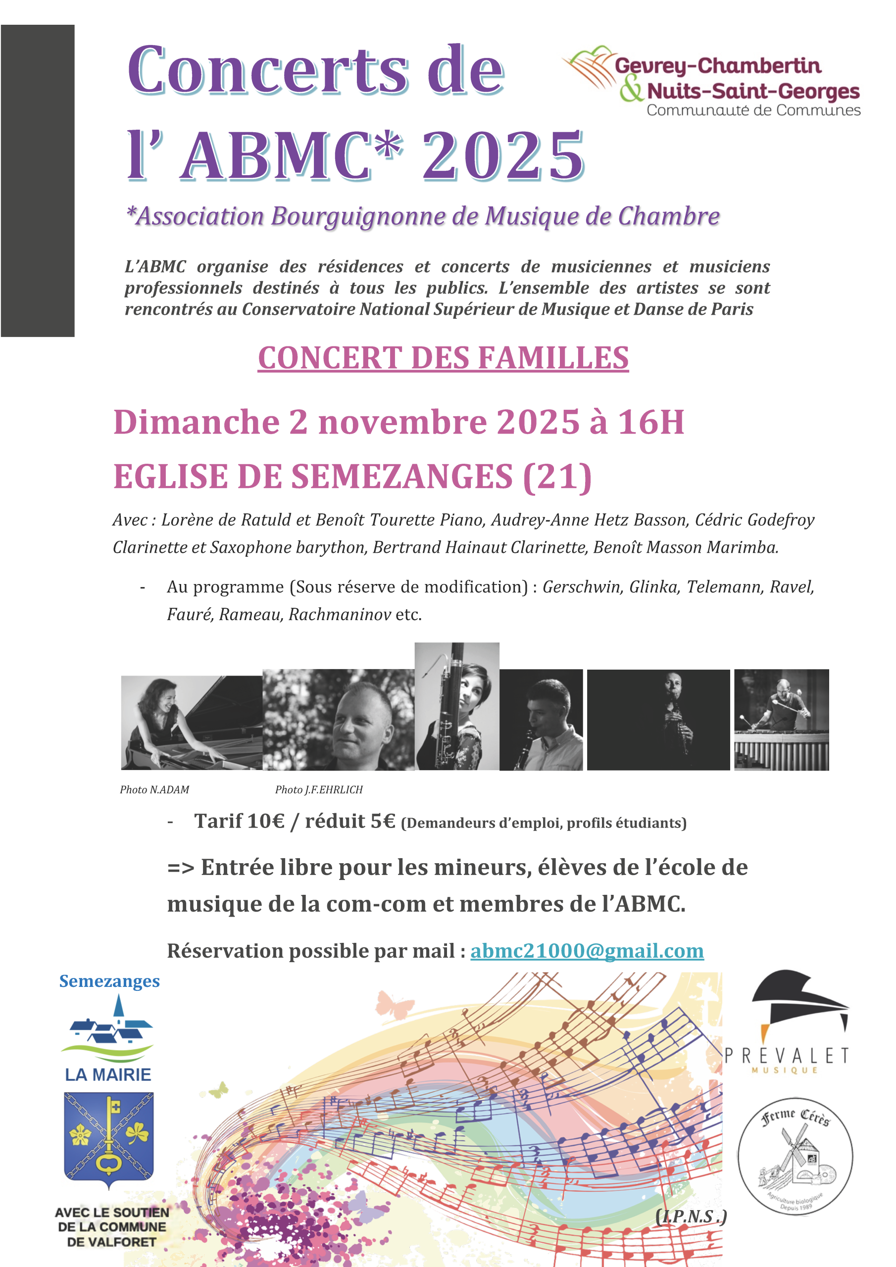 Tarif : 10€ / 5€ réduit (Demandeurs d’emploi / étudiants) Gratuité pour les élèves de l’école de musique de la com-com, les mineurs et membre de l’ABMC