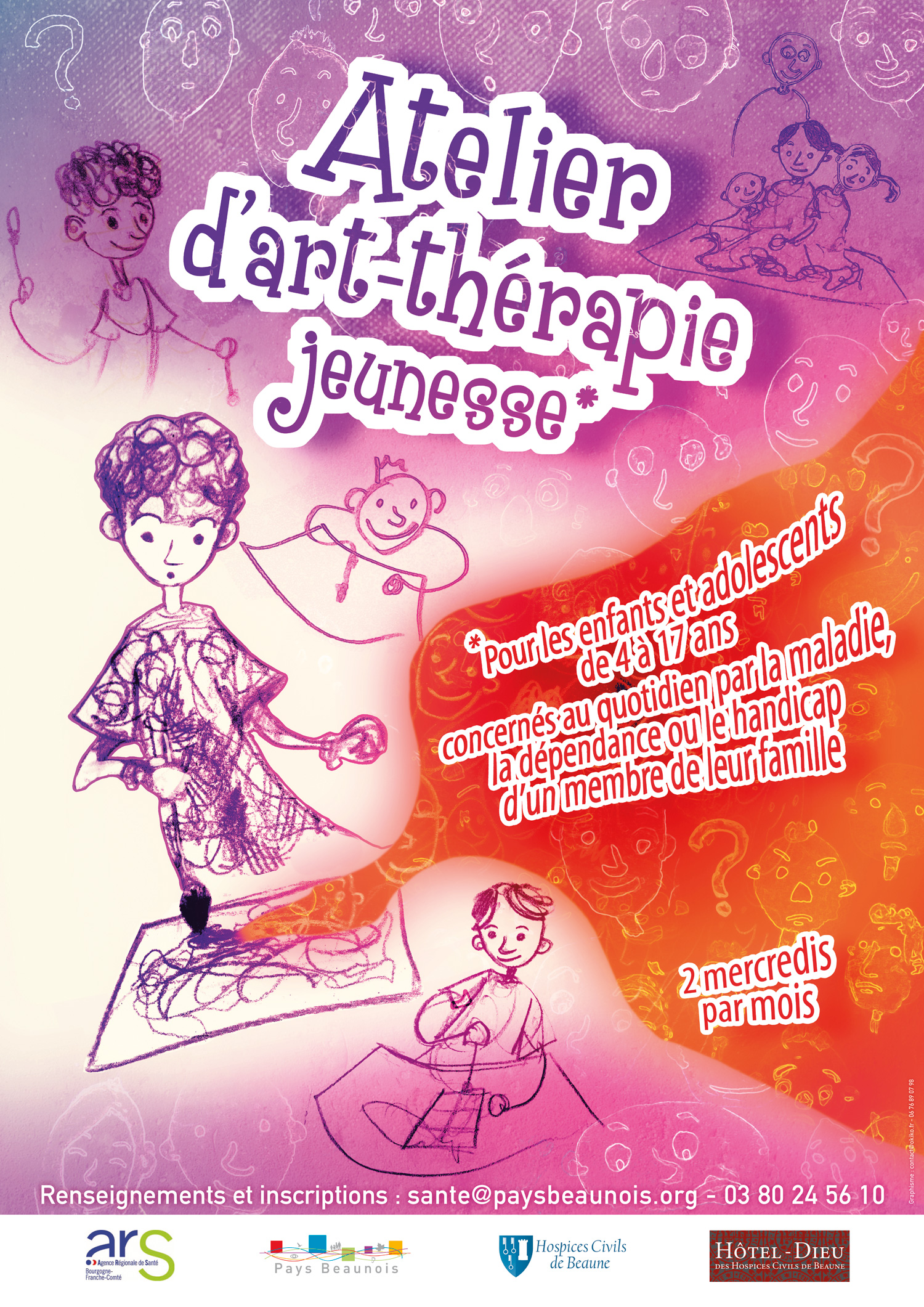 Dans le cadre du Contrat Local de Santé, le Pays Beaunois, en partenariat avec l’Hôtel-Dieu des Hospices de Beaune, met en place un Atelier d’art-thérapie jeunesse à destination des enfants et jeunes de 4 à 17 ans concernés au quotidien ou de façon régulière par la maladie, la dépendance ou le handicap d’un membre de leur famille.