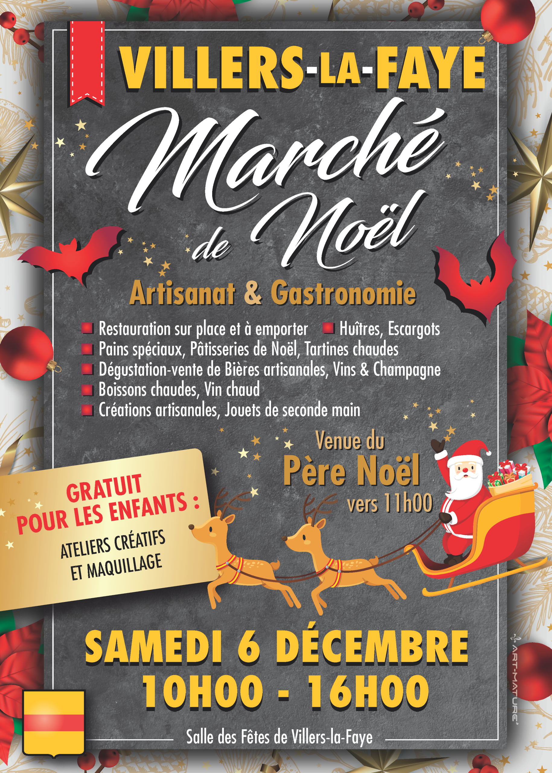 Artisanat et Gastronomie. Restauration sur place et à emporter, dégustation-vente de bières artisanales, vins et champagne, boissons chaudes, vin chaud, créations artisanales, jouets de seconde main… Venue du Père Noël vers 11h. Ateliers créatifs et maquillage gratuits pour les enfants.