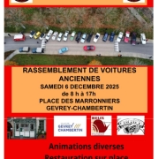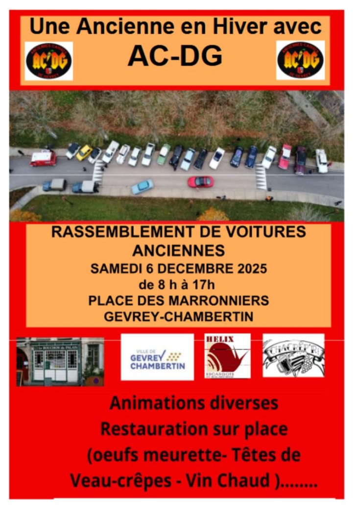 Rassemblement de voitures anciennes. Animations diverses. Restauration sur place (œufs meurette, tête de veau, crêpes, vin chaud).