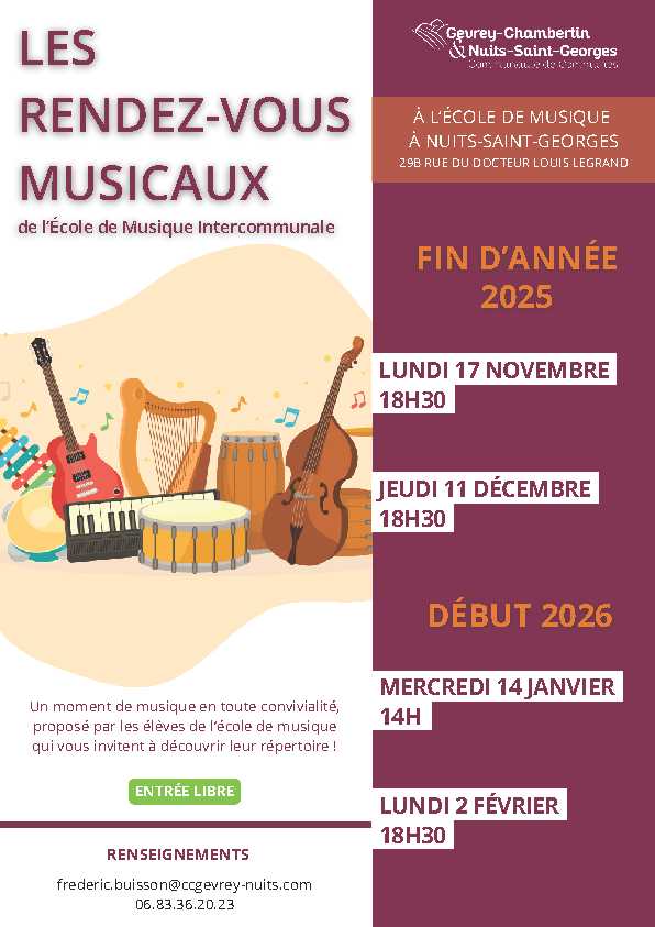 Lieu manifestation : Ecole de musique intercommunale, 29b rue du Docteur Louis Legrand à Nuits-Saint-Georges
