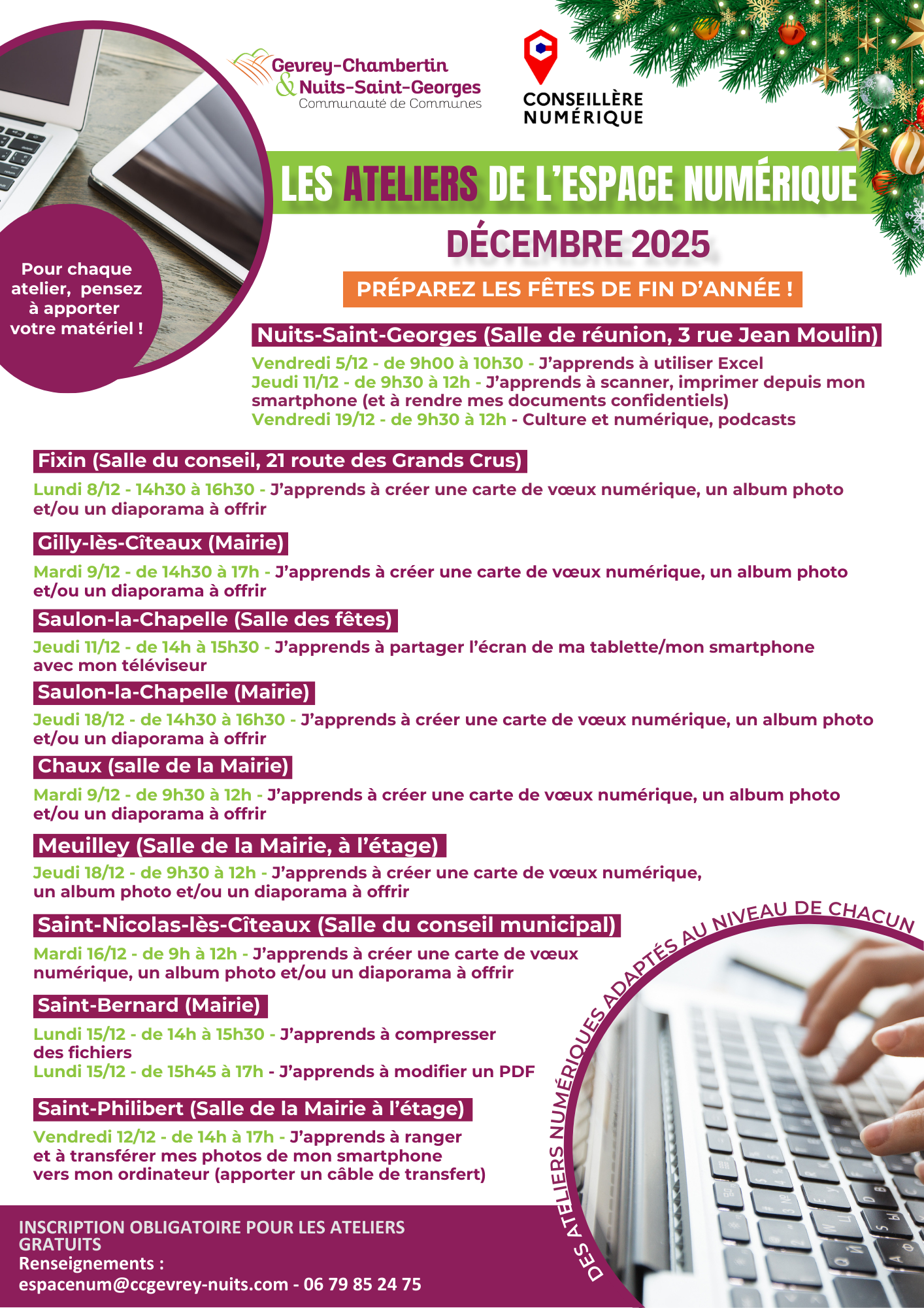 La Conseillère numérique de la Communauté de communes vous donne rendez-vous en décembre pour de nouveaux ateliers numériques, autour de la thématique « Préparez les fêtes de fin d’année ! ».