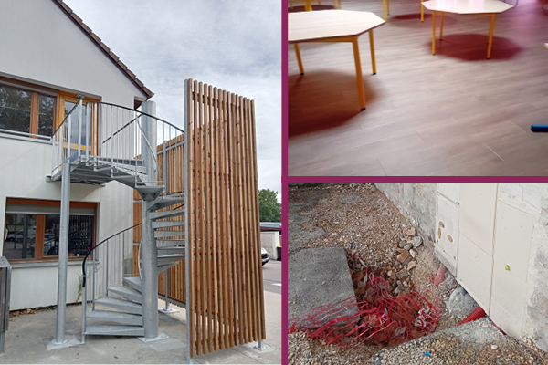 À la micro-crèche Les Lucioles à Gevrey-Chambertin, la qualité de l’air a été améliorée grâce à l’installation d’un système de ventilation (par MH Services – 14 158 €). À la crèche La Coccinelle à Nuits-Saint-Georges, la salle Cigale a bénéficié d’un rafraîchissement avec la réfection de la peinture (par l’entreprise A3PICS – 6 120 €). Au restaurant scolaire de Villers-la-Faye, les sols ont été entièrement repris (par MH Services – 24 000 €), et sur le site du périscolaire de L’Étang-Vergy, des travaux sur le réseau d’eaux usées et la pose d’un bac à graisse ont été réalisés par l’entreprise Guinot. Cette dernière est également intervenue début novembre au périscolaire de Noiron-sous-Gevrey pour remettre aux normes les réseaux d’eaux usées et d’eau potable du site, et pour poser un bac à graisse (11 880,28 €). Du côté du Clos Michel à Nuits-Saint-Georges, des travaux de séparation du réseau électrique ont été menés afin de le rendre indépendant de l’école Barbier, auquel il était rattaché (par les entreprises Thomas, Enedis et ESME-Solution – 15 560 €). Sur le site extrascolaire de Concoeur, 1/3 de la toiture du bâtiment a été recouvert d’une résine pour prévenir les infiltrations (entreprise Rougelin – 7 123,92 €).