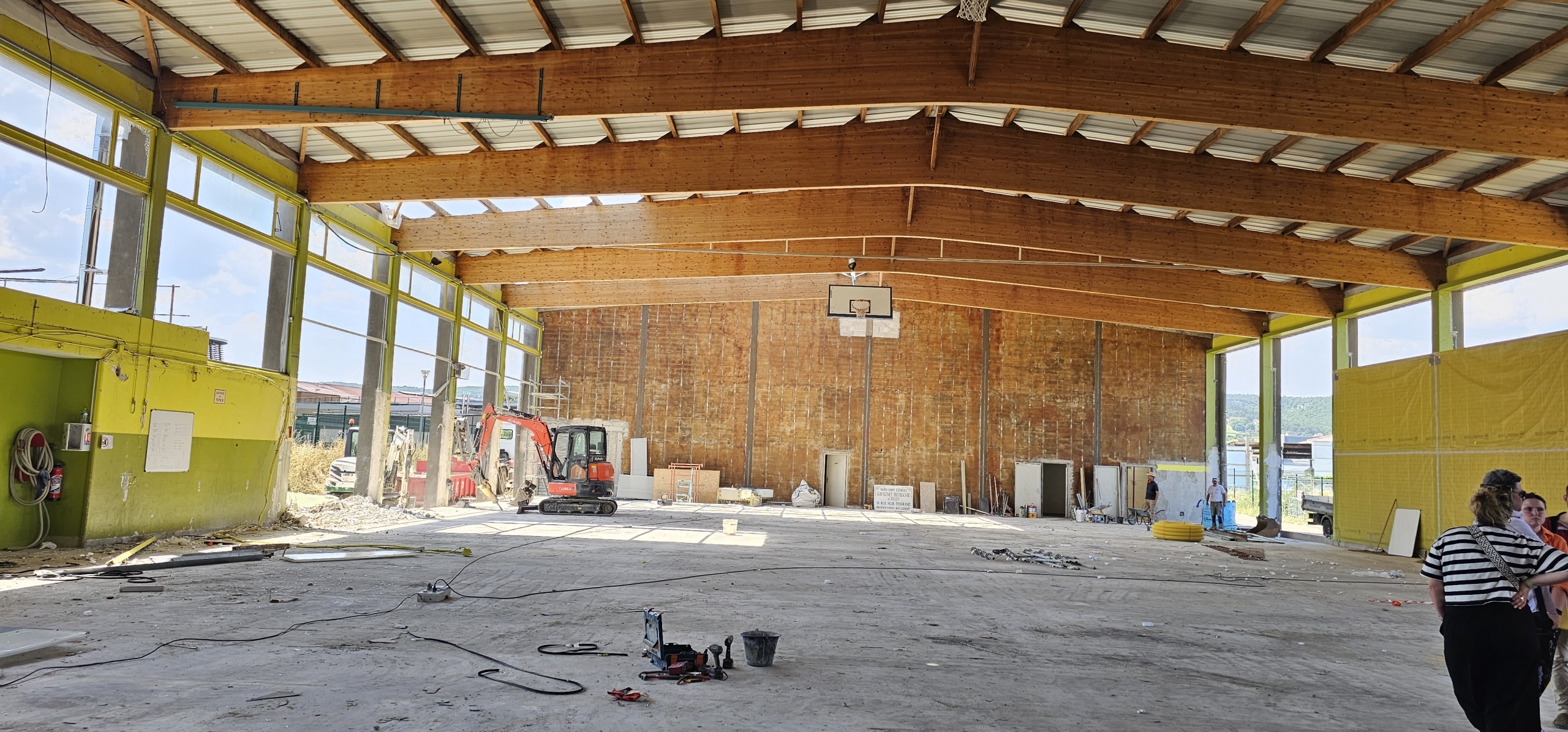 Depuis son lancement, le chantier se poursuit : après la phase de désamiantage qui s’est achevée au mois de mai, les travaux de gros œuvre ont pu débuter en juin. La portance de la charpente existante s’étant révélée trop faible pour supporter tous les matériaux d’isolation, un avenant avait dû être passé en Bureau communautaire avant l’été pour des travaux de renforcement. Ces derniers ont depuis été réalisés. L’étape des forages géothermiques est également achevée.