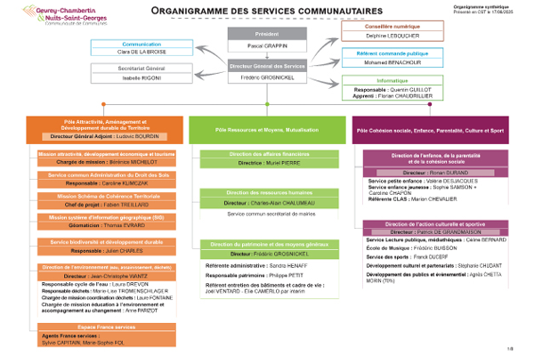 Vous pouvez retrouver ci-dessous les dernières versions de l’annuaire interne et de l’organigramme de la collectivité, ainsi que le trombinoscope des élus mis à jour.