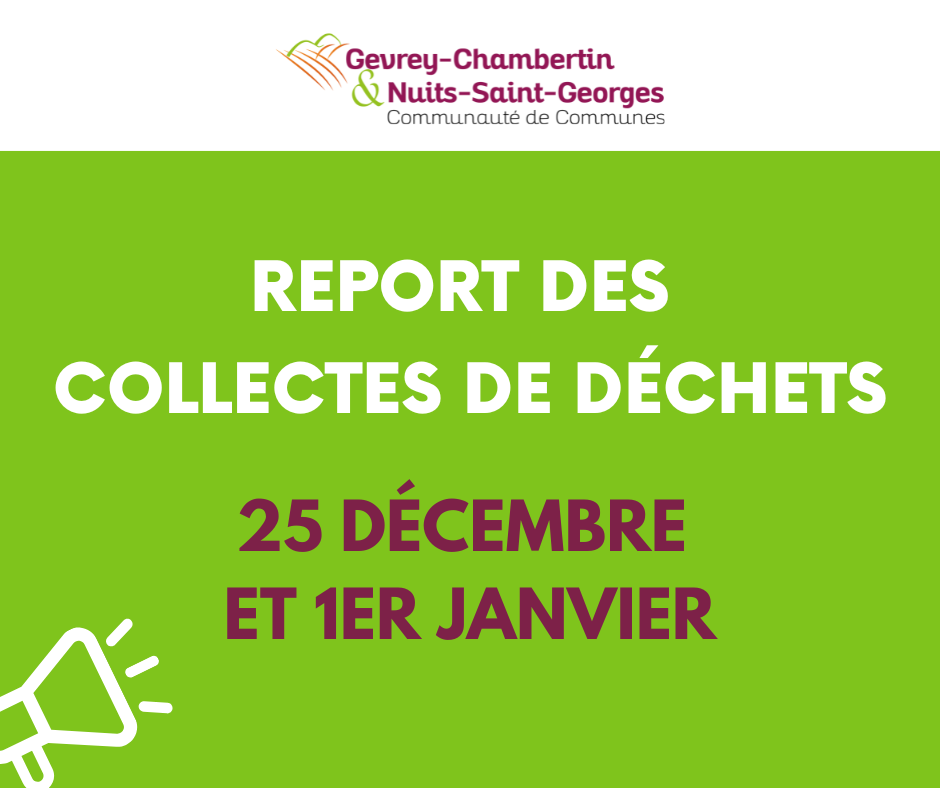 - Collecte sélective du jeudi 25 décembre 2025 pour Nuits-Saint-Georges : le jour de rattrapage est prévu le mardi 23 décembre 2025.