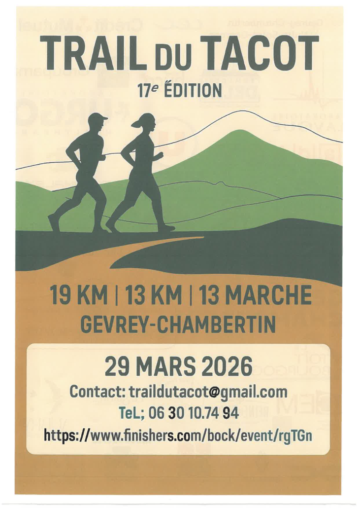 Le Trail du Tacot est un événement sportif en plein cœur de la Bourgogne-Franche-Comté, à Gevrey-Chambertin, dans le département de la Côte-d’Or. Les courses proposées sont adaptées tant pour les coureurs aguerris que les débutants.