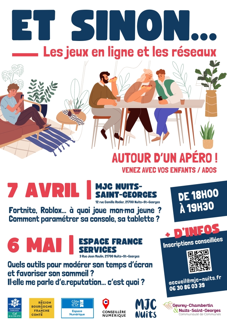 Un temps convivial pour mieux comprendre les pratiques numériques des jeunes (jeux en ligne, réseaux sociaux). Apports simples, conseils concrets et moment d’échange autour d’un apéro, et de partage.