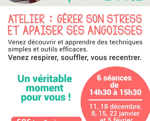 A partir du 11/12 - Atelier Gérer son stress et apaiser ses angoisses