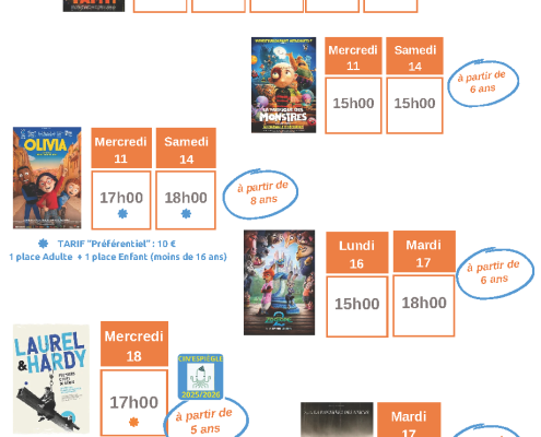 Du 07 au 20/02 – Séances au cinéma pour les enfants