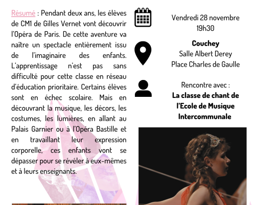Date et heure : 28/11 à 19h30 Lieu manifestation : Couchey,…