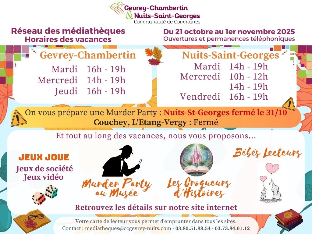 La Communauté de communes de Gevrey-Chambertin et de Nuits-Saint-Georges dispose d’un réseau de 4 médiathèques sur l’ensemble de son territoire.